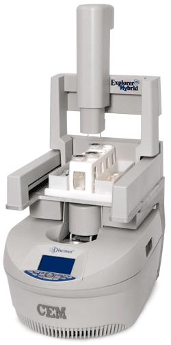 The group has a CEM explorer hybrid-12 microwave synthesiser capable of automatically switching between 10ml and 35ml vials. This is controlled by the desktop computer in the write-up area.